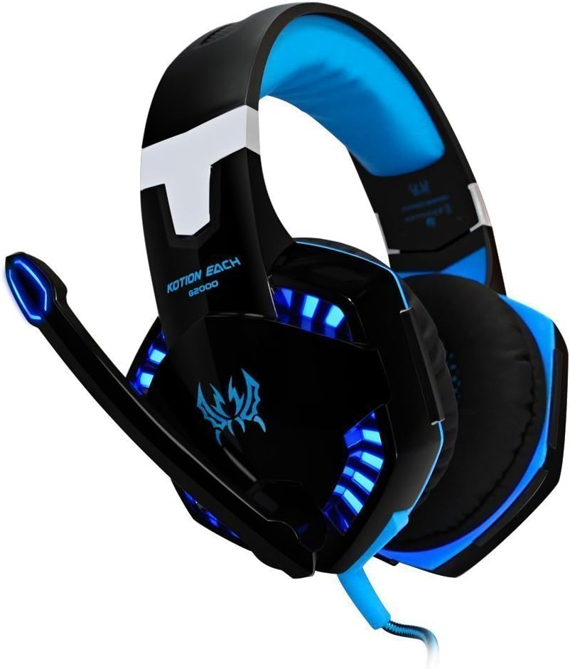 KOTION G2000 Gaming Headphone Headset Stereo Bass Over-ear Headband Mic PC Blue